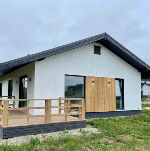 Дом по проекту застройщика — это стильный и просторный вариант с большими панорамными окнами и высокими потолками за счет кладки 12 ряда блоков. В проектах 2, 3 или 4 большие спальни, одна из них мастер-спальня, гардеробная, кухня-гостиная со вторым светом и с выходом на крытую террасу. Рядом лес и водоемы.